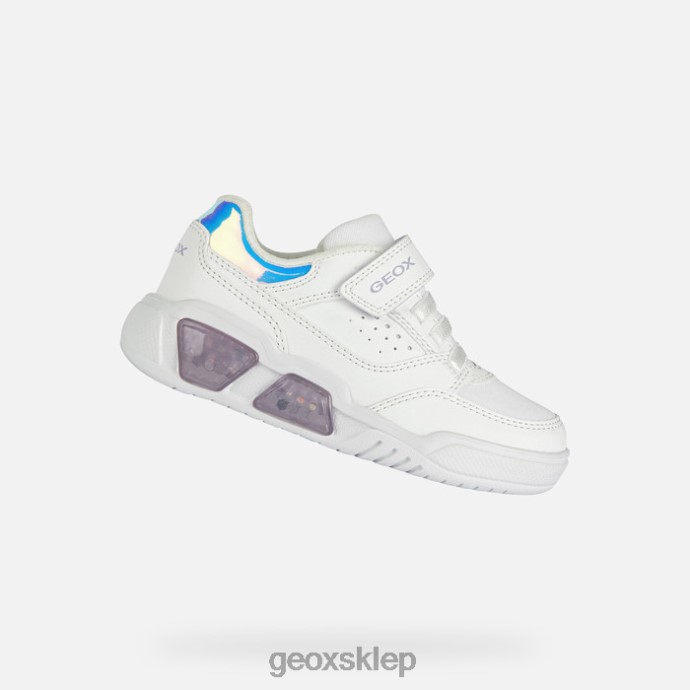 wygodne, amortyzujące tenisówki dla juniorów o sportowej, energetycznej estetyce. ta biało-liliowa wersja illuminus ma cholewkę wykonaną z materiału imitującego przewróconą skórę oraz błyszczącą tkaninę i wyróżnia się aktywnym stylem. lampki wbudowane w podeszwę zewnętrzną natychmiast naładują akumulatory dzieci i sprawią, że podbiją dzień szturmem.