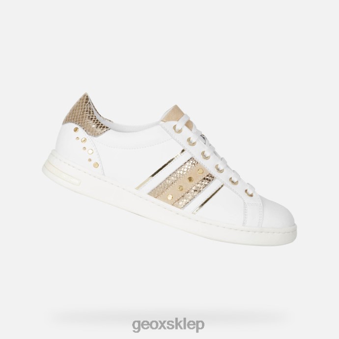 damskie tenisówki o niskim kroju, o współczesnym, eleganckim wyglądzie i oddychającej, wygodnej konstrukcji. z cholewką w kolorze białym nappa ozdobioną wstawkami z błyszczącej skóry w kolorze złotym z efektem pytona, jaysen to współczesna wersja kultowych tenisówek z eleganckimi ozdobnymi ćwiekami – to jeden element obuwia, który pozwoli Ci wyprzedzić styl komplet.