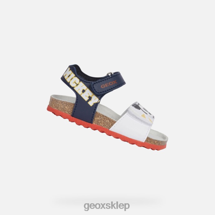 chłopięce sandały o anatomicznej budowie z nadrukiem myszki Miki. chalki to sandały, które dodadzą optymistycznego akcentu letnim dniom. będące owocem współpracy firm Geox i Disney, te wygodne, oddychające sandały zostały wykonane z materiału imitującego skórę w marynistycznej palecie granatu i bieli i ozdobione zabawnymi wizerunkami Myszki Miki.