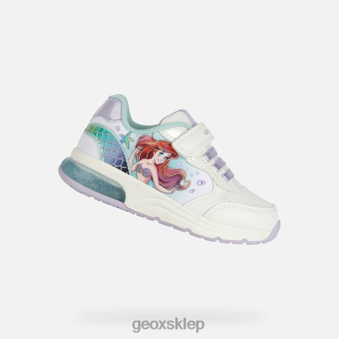 oddychające tenisówki dla dziewcząt o aktywnej estetyce, nawiązujące do klasyki Disneya „Mała syrenka”. spaceclub zachwyci małe dziewczynki dzięki uderzająco atrakcyjnej cholewce z nadrukiem księżniczki Ariel w biało-morskiej kolorystyce. wykonane z tkaniny i materiału imitującego skórę, mają ładne światełka w przezroczystej podeszwie zewnętrznej, które magicznym akcentem ożywią każdy look.