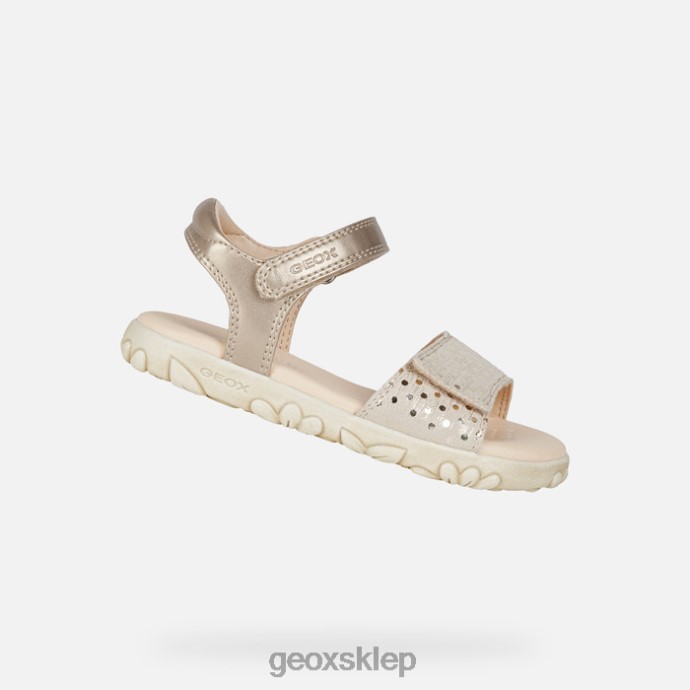 dziewczęce regulowane letnie sandały o wygodnej, oddychającej konstrukcji. specjalnie zaprojektowany dla delikatnych stópek małych dziewczynek sandał haiti ma praktyczne regulowane paski, wygodną skórzaną wkładkę i cholewkę wykonaną z tłoczonego zamszu oraz perłowego materiału imitującego skórę w uniwersalnym beżowym odcieniu. uzupełniono go o przepiękne, kolorowe kwiaty wytłoczone na spodzie podeszwy, które poprawiają przyczepność.