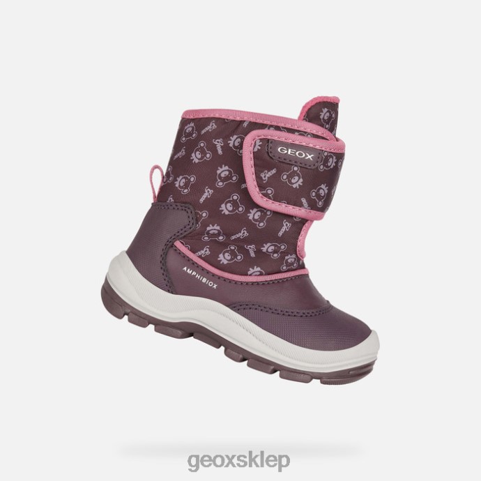 dziewczęce wodoodporne botki za kostkę zapewniające wygodę w chłodne zimowe dni. But flanfil abx to idealne rozwiązanie outdoorowe, które ochroni stopy małych dziewczynek w przypadku złej pogody i niskich temperatur. cholewka została wykonana z materiału imitującego skórę oraz nylonu z nadrukiem w kolorze śliwkowo-ciemno-fuksjowo-różowym. wygodne, oddychające obuwie, które skutecznie ochroni zimowe dreszcze.