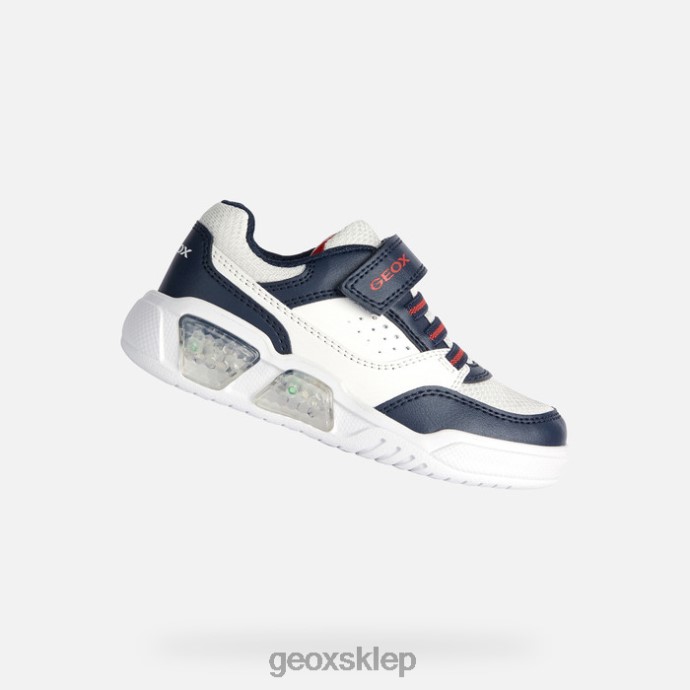 oddychające, amortyzujące tenisówki dla juniorów o aktywnej estetyce, która nawiązuje do stylu butów do biegania. ta wersja iluminusa w kolorze granatowym i białym jest pełna swobodnego uroku i energii i okaże się idealna zarówno do szkoły, jak i do spędzania wolnego czasu. wykonane z materiału i tkaniny imitującej skórę, to obuwie ma światełka na podeszwie zewnętrznej, które zapewniają zabawę i dobry nastrój podczas chodzenia.